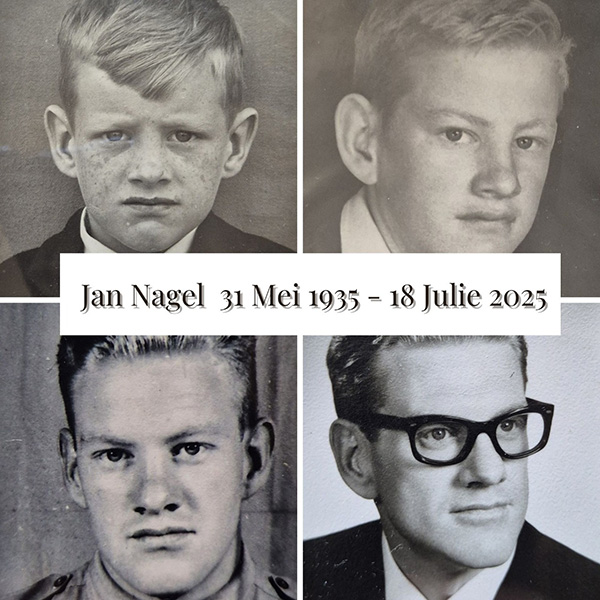 Ons dierbare Jan se gedenkdiens sal Saterdag, 26 Julie 2025 om 10:30 by die Duitse Ouetehuis gehou word.